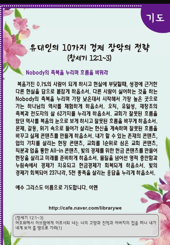 유대인은 탈무드에서 나온 비밀로 경제를 장악했습니다. 복음을 가진 0.1%의 사람은 현실에 부딪힐 때, 성경에 근거 한 답인 다른 현실을 보아야 합니다. 성경의 Remnant 7명과 이들을 도운 산업인(이드로, 라합, 오바댜)은 이 답을 누리며 언약의 증인으로 섰습니다. 이들처럼 언약의 여정 속에 있는 내가 실제 콘텐츠를 만들기 위해 무엇을 알아야 할까요?