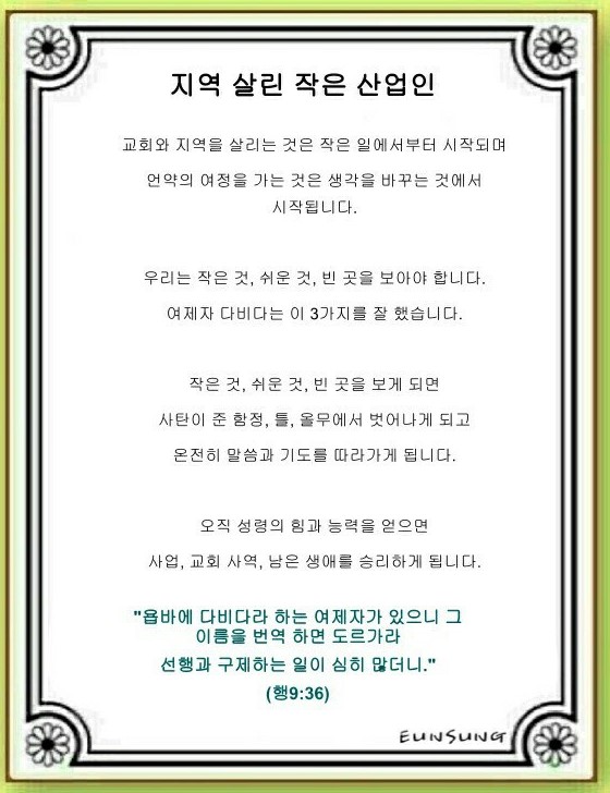 지역 살린 작은 산업인(사도행전 9:36~43)
