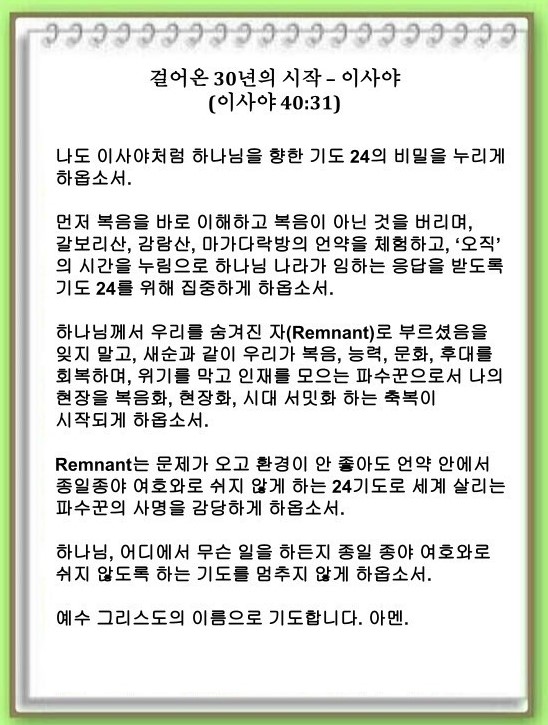 걸어온 30년의 시작 - 이사야(이사야 40:31)-기도수첩