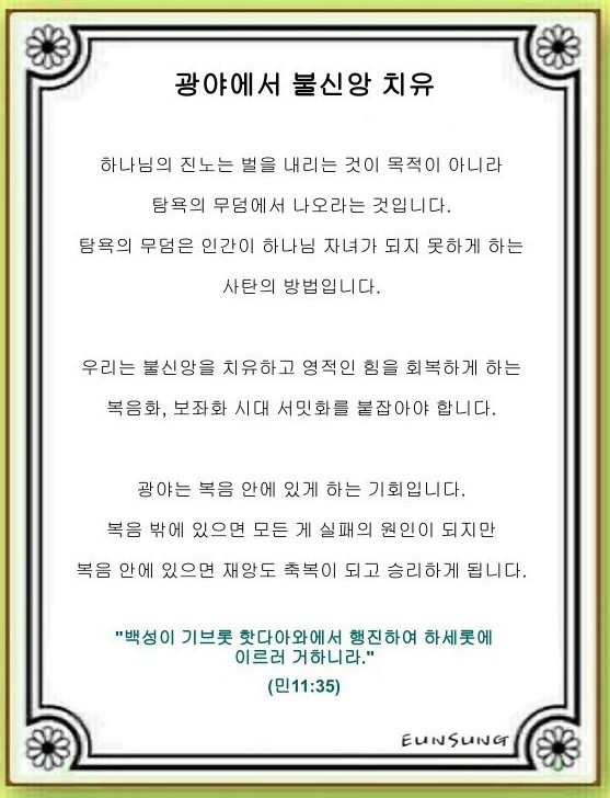 광야에서 불신앙 치유(민수기 11:31~35)-기도수첩