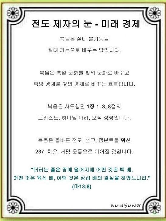 전도 제자의 눈 - 미래 경제_미래 재산(마태복음 13:1~9)