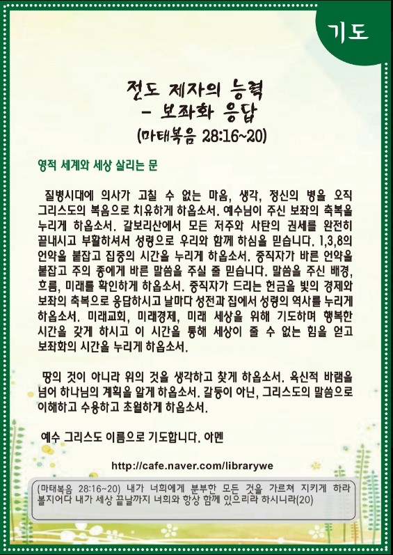 | 전도 제자의 눈 - 미래 경제_미래 재산(마태복음 13:1~9)-기도수첩 (0) | 2021.06.14 |