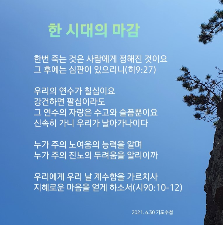 | 막힌 길을 여는 시간표(민수기 20:14~21)-기도수첩 (0) | 2021.06.29 |