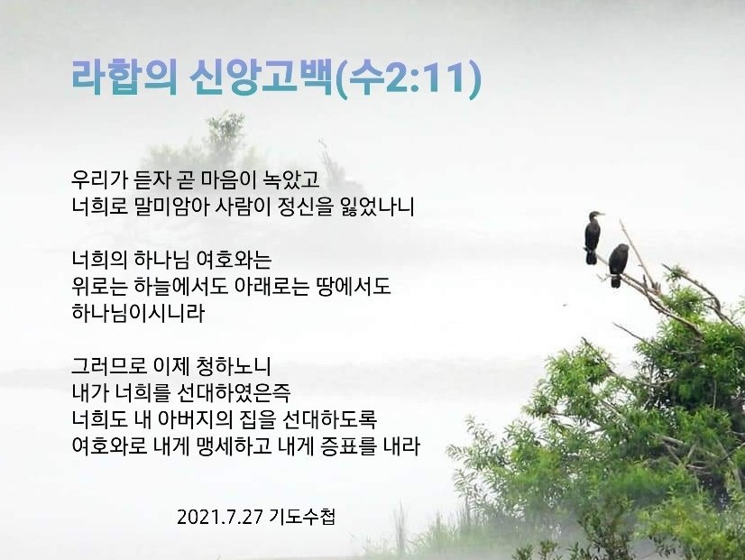 중요한 순간에 믿음의 선택을 한 라합은 자신과 다른 사람을 살리는 영원한 응답을 누렸습니다. 오늘 다가오는 모든 만남과 일에 믿음을 선택할 때 하나님께서 이루어 가시는 구원의 역사를 체험하게 될 것입니다.
