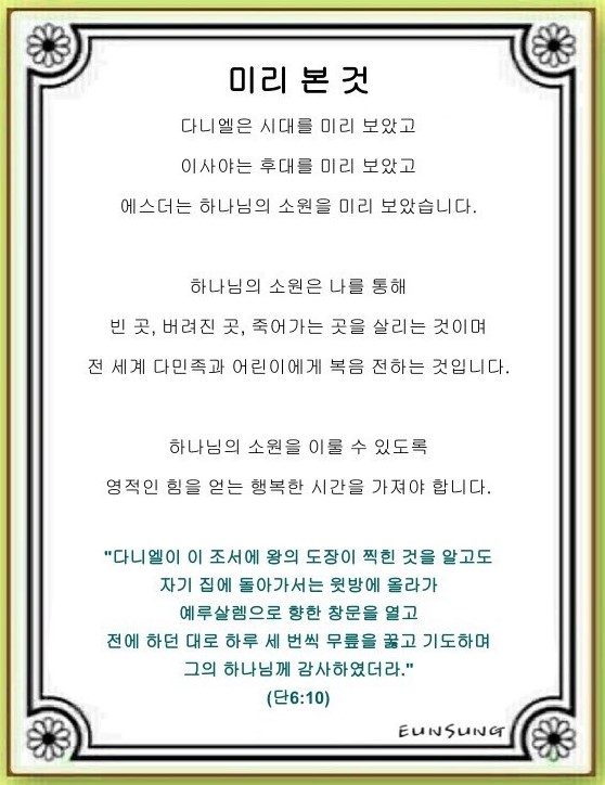 미리 본 것(다니엘 6:10)-기도수첩
