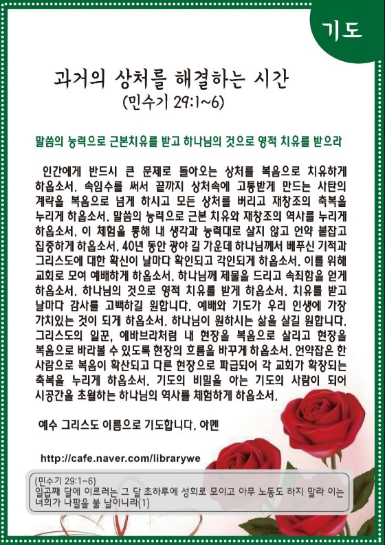 과거의 상처를 해결하는 시간(민수기 29:1~6)-기도수첩