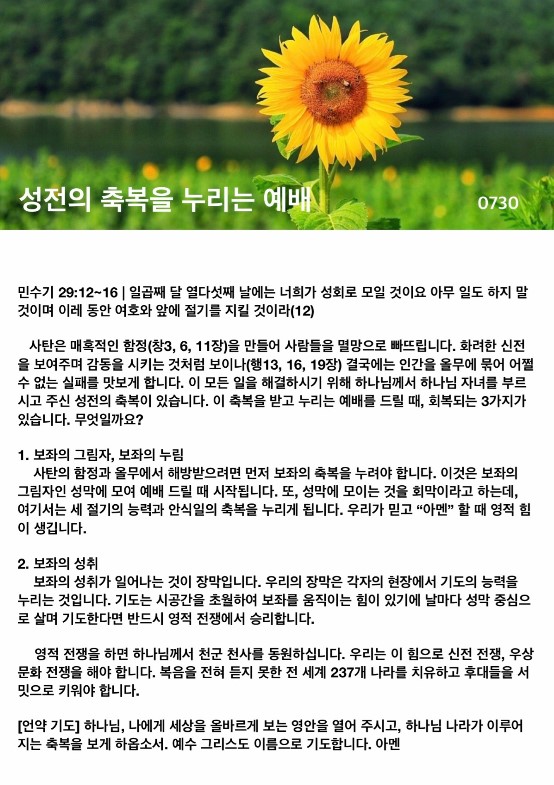 성전의 축복을 누리는 예배(민수기 29:12~16)