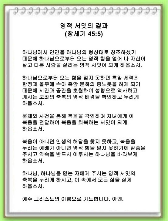 영적 서밋의 결과(창세기 45:5)-기도수첩