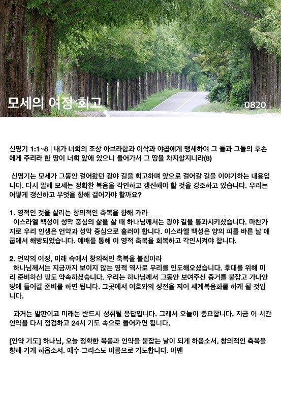과거는 발판이고 미래는 반드시 성취될 응답입니다. 그래서 오늘이 중요합니다. 지금 이 시간 언약을 다시 점검하고 24시 기도 속으로 들어가면 됩니다.