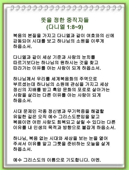 [언약 기도] 하나님, 복음 없는 시대와 세상을 보는 눈을 열어주옵소서. 이유를 알고 그릇을 준비하는 오늘을 살게 하옵소서. 예수 그리스도 이름으로 기도합니다. 아멘