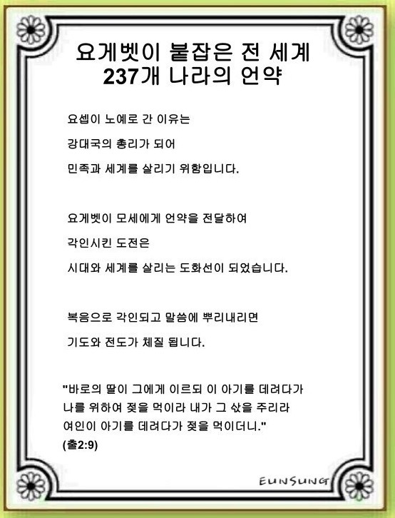 요게벳이 붙잡은 전 세계 237개 나라의 언약(출애굽기 2:1~10)