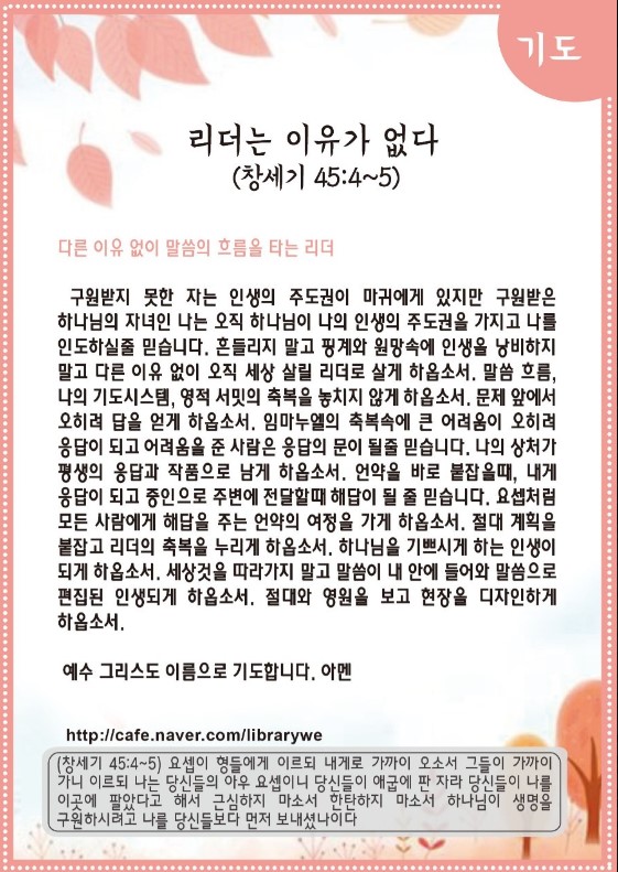 리더는 이유가 없다(창세기 45:4~5)