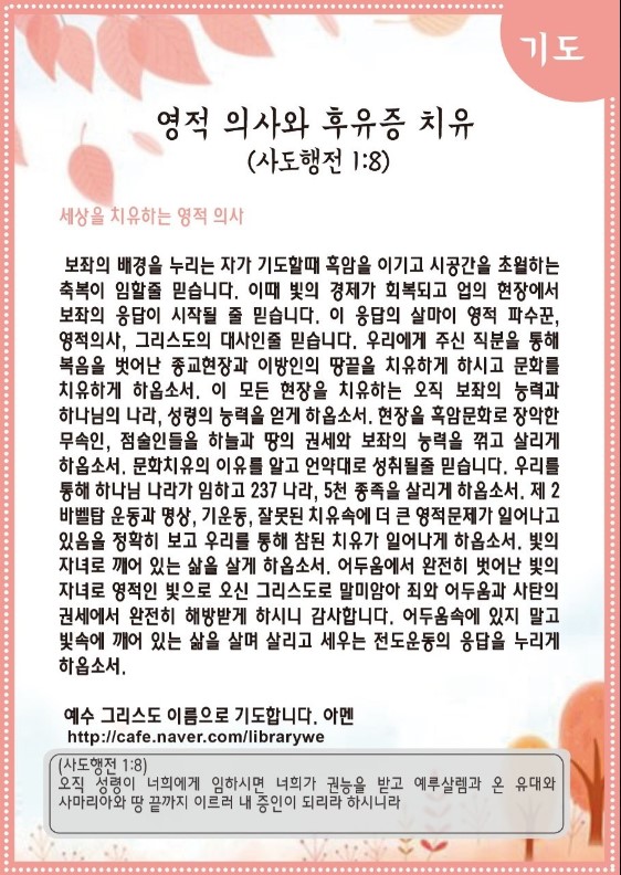 영적 의사와 후유증 치유(사도행전 1:8)-기도수첩