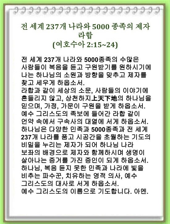 전 세계 237개 나라와 5000 종족의 제자 라합(여호수아 2:15~24)