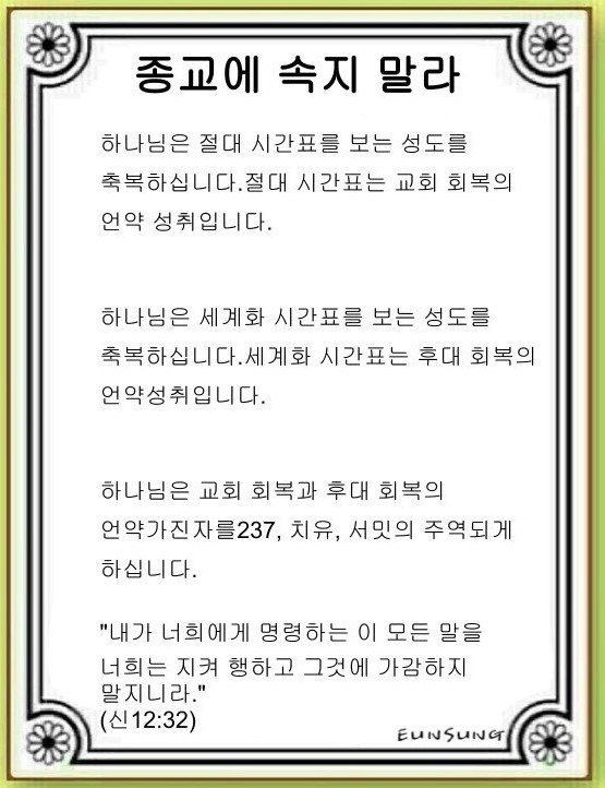 내가 너희에게 명령하는 이 모든 말을 너희는 지켜 행하고 그것에 가감하지 말지니라(32)