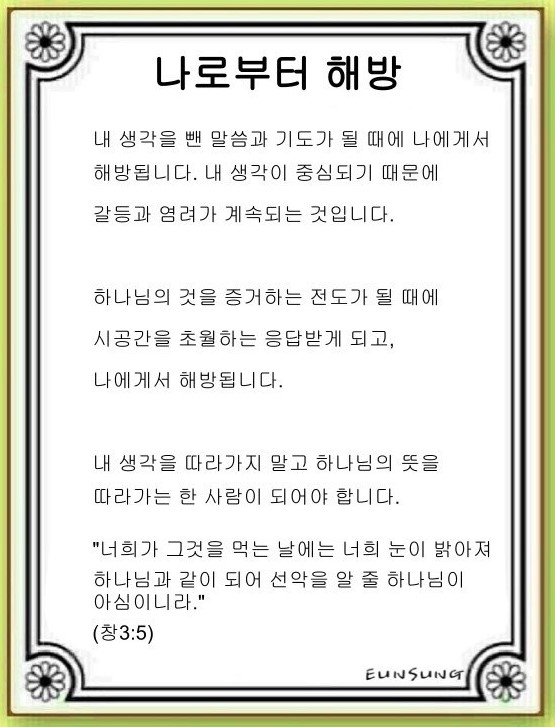 성도들이 많은 훈련을 받고 노력하는데도 여전히 안 되는 부분이 있습니다. 성공은 했지만, 신앙생활이 힘든 사람도 있습니다. 이런 와중에 교회들은 분쟁 가운데 빠져있습니다. 이 부분에 대한 치유가 시급한데, 가장 중요한 것은 먼저 나에게서 해방되는 것입니다. 어떻게 해야 할까요?