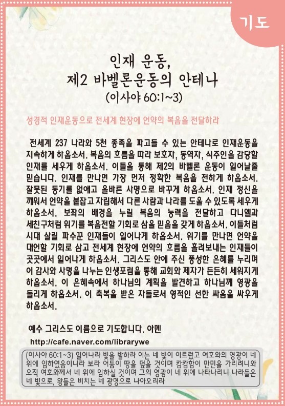 인재 운동, 제2 바벨론운동의 안테나(이사야 60:1~3)-기도수첩