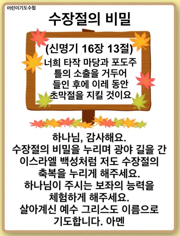 수장절의 비밀을 누리면서 5분 말씀 묵상을 해보세요.