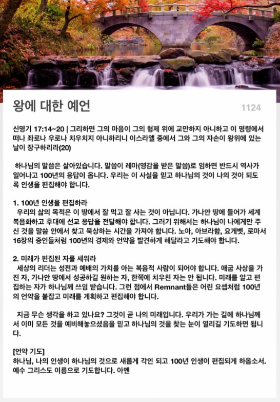 왕에 대한 예언(신명기 17:14~20)-기도수첩