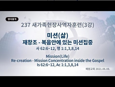 인터넷총국 (홈페이지 http://data.rutc.com) 후원: (국민은행) 856701-04-233309 (사)세계복음화전도협회 인터넷총국 분류 2021- 237새가족현장사역자 훈련 제목 3강: 미션(삶)→ “재창조- 복음 안에 있는 미
