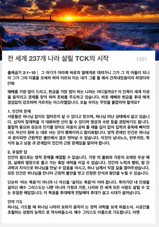전 세계 237개 나라 살릴 TCK의 시작(출애굽기 2:1~10)