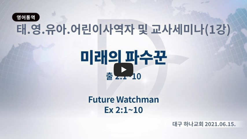 인터넷총국 (홈페이지 http://data.rutc.com) 후원: (국민은행) 856701-04-233309 (사)세계복음화전도협회 인터넷총국 분류 2021- 렘넌트 사역자/교사 세미나 제목 태영아/유아유치/어린이 - 1강: 미래의 파수