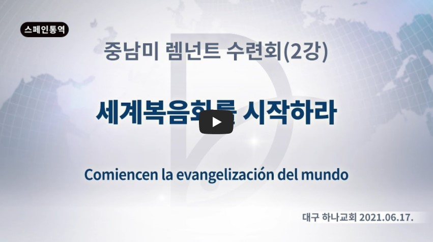 인터넷총국 (홈페이지 http://data.rutc.com) 후원: (국민은행) 856701-04-233309 (사)세계복음화전도협회 인터넷총국 분류 2021- 중남미 렘넌트수련회 제목 2강: 세계복음화를 시작하라! 성경 사도행전 19:21,