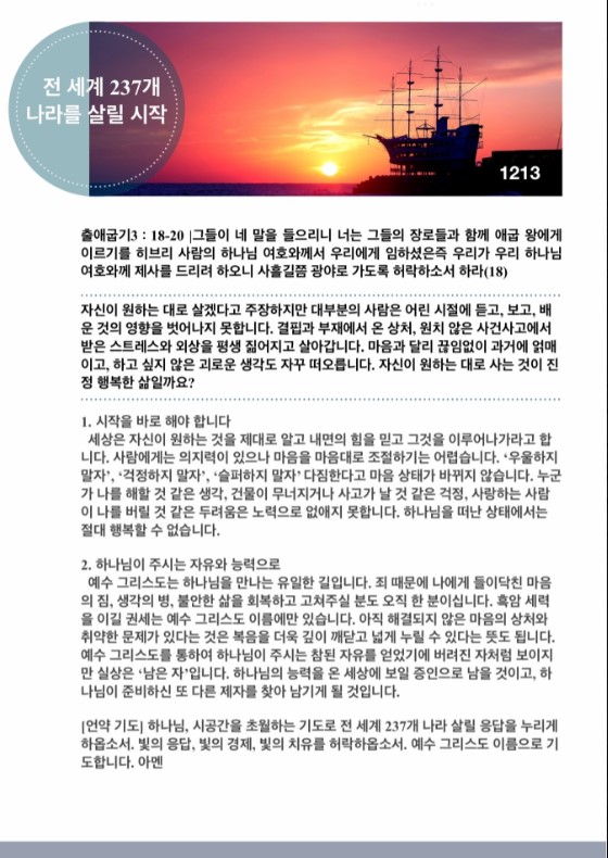 전 세계 237개 나라를 살릴 시작(출애굽기 3:18~20)