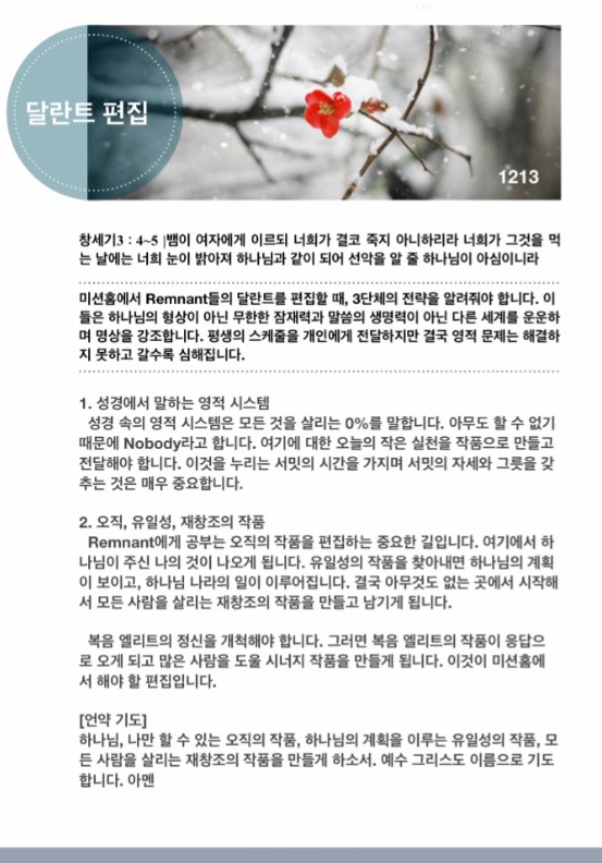 | 하나님의 복음의 능력의 말씀을 편집 ‘각인’(창세기 1:27~28)-기도수첩 (0) | 2021.12.17 |