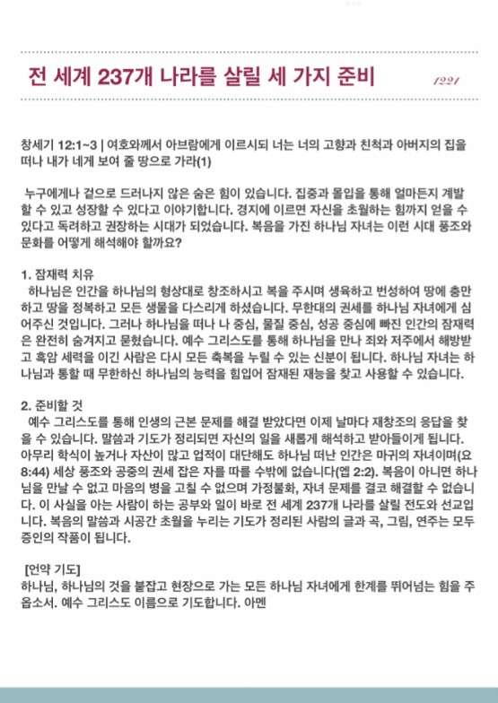 전 세계 237개 나라를 살릴 세 가지 준비(창세기 12:1~3)
