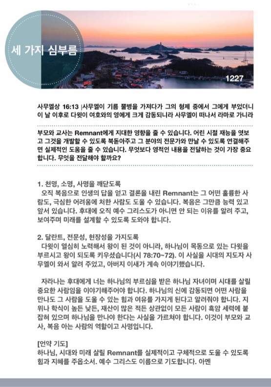 세 가지 심부름(사무엘상 16:13)-기도수첩