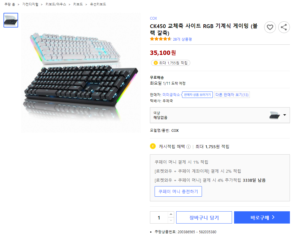 교체축 기계식 단일 LED & 측면 RGB게이밍 키보드 입니다.