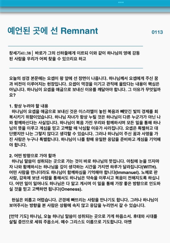예언된 곳에 선 Remnant(창세기 41:38)-기도수첩