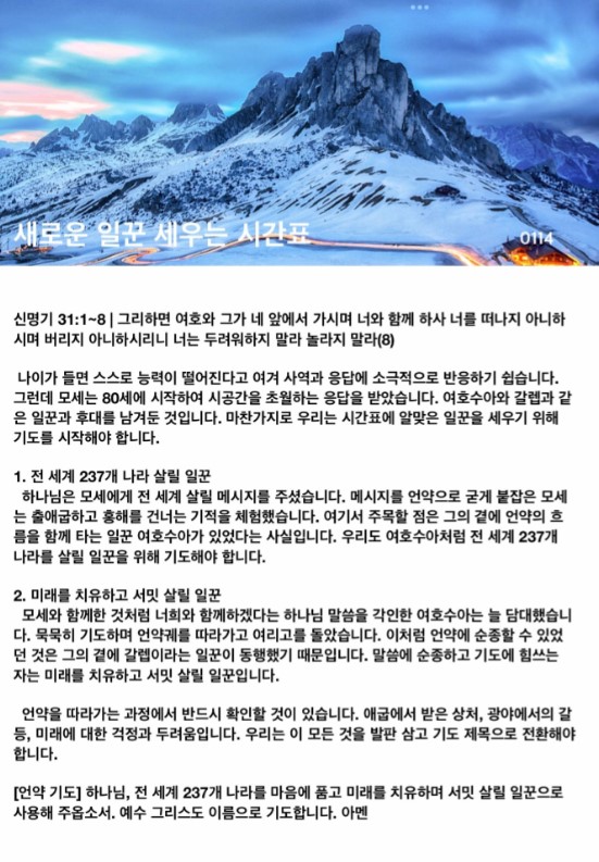 새로운 일꾼 세우는 시간표(신명기 31:1~8)