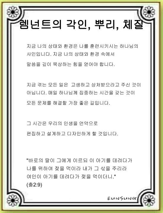 Remnant의 각인, 뿌리, 체질(출애굽기 2:1~10)
