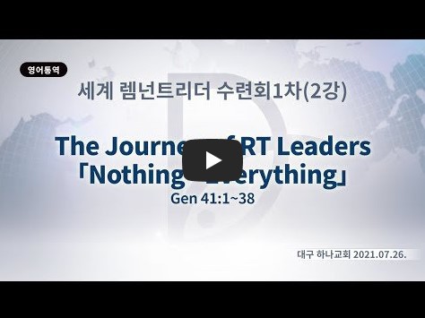 2022년 1월 26일(수) 분류 2021- 제24차 세계Remnant 리더수련회 제목 2강: 렘넌트 리더들의 여정- Nothing → Everythiing 성경 창세기 41:1-38 일시/장소 2021년 7월 26일, 대구 하나교회 강사 류광수 목사 (정리