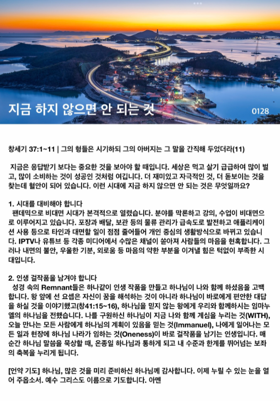 지금 하지 않으면 안 되는 것(창세기 37:1~11)