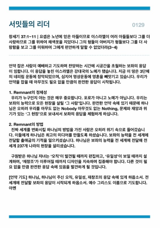 2022년 1월 29일(토) 분류 2021- 제24차 세계렘넌트대회 제목 1강: 237+렘넌트=Leader → 보좌의 축복 (Blessing of Throne) 성경 창세기 37:1-11 일시/장소 2021년 8월 3일-5일, 대구 하나교회(온라인) 강사 류광수