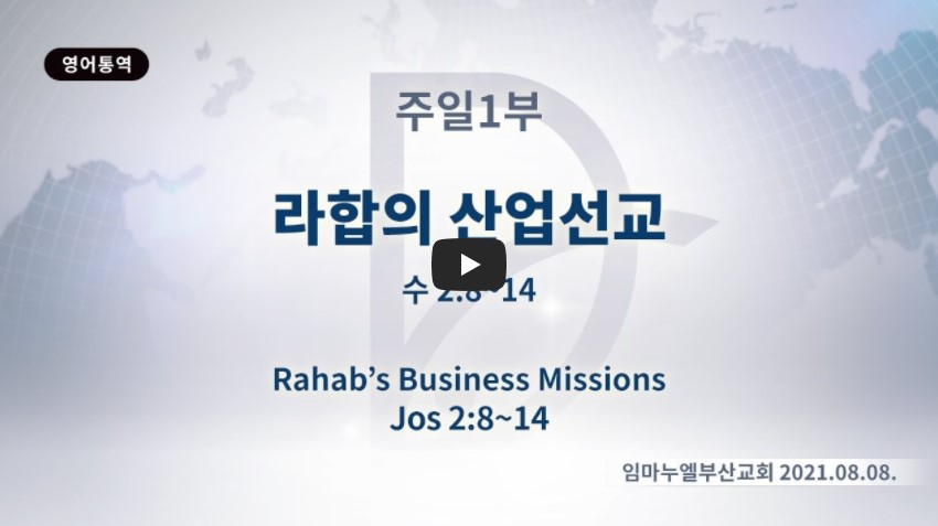 2022년 2월 2일(수) 분류 주일예배 설교- 주일1부 제목 라합의 산업선교 성경 여호수아 2:8-14 일시/장소 2021년 8월 8일, 임마누엘 교회(부산) 강사 류광수 목사 (정리: 차동호 목사) 주제어 ♠성경말