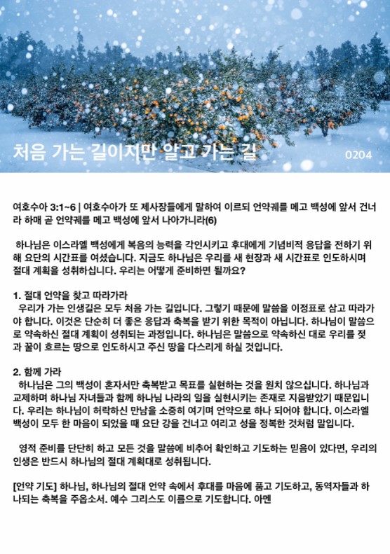 처음 가는 길이지만 알고 가는 길(여호수아 3:1~6)