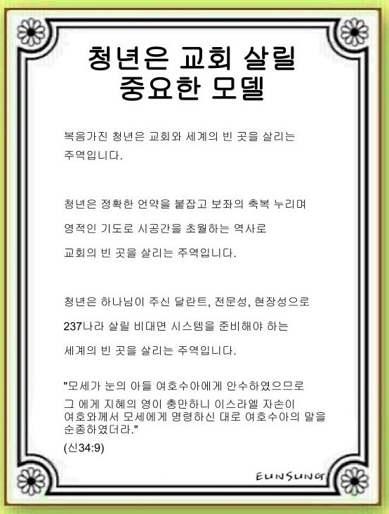 청년은 교회 살릴 중요한 모델(신명기 34:1~12)