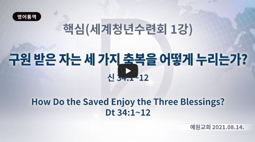 2022년 2월 10일(목) 분류 핵심훈련- 세계 청년수련회 제목 (세계청년수련회1강) 구원받은 자는 세가지 축복을 어떻게 누리는가? - 청년들의 급한 것+미래 준비+남길 것 성경 신명기 34:1-12 일시/장소