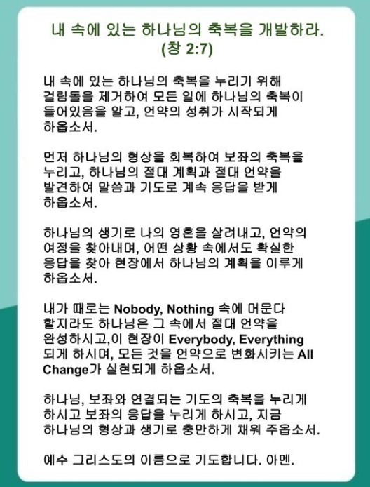 [언약 기도] 하나님, 보좌와 연결되는 기도의 축복을 누리게 하시고 보좌의 응답을 누리게 하옵소서. 지금 하나님의 형상과 생기로 충만하게 채워 주옵소서. 예수 그리스도 이름으로 기도 합니다. 아멘
