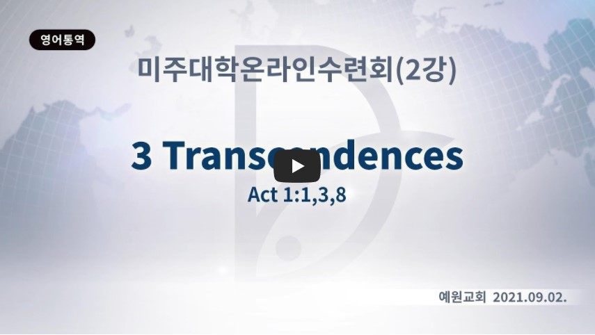 2022년 3월 4일(금) 분류 2021- 미주 대학수련회 제목 2강: Three Transcendence 성경 일시/장소 2021년 9월 1-3일, 예원교회(온라인) 강사 류광수 목사 (정리: 차동호 목사) 주제어 ♠ 주제: 1세기 늦은 미국