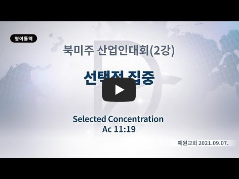2022년 3월 14일(월) 분류 2021- 북미주 산업인대회 제목 2강: 선택적 집중 성경 사도행전 11:19 일시/장소 2021년 9월 7일-8일, 예원교회(온라인) 강사 류광수 목사 (정리: 차동호 목사) 주제어 ♠ 주제: