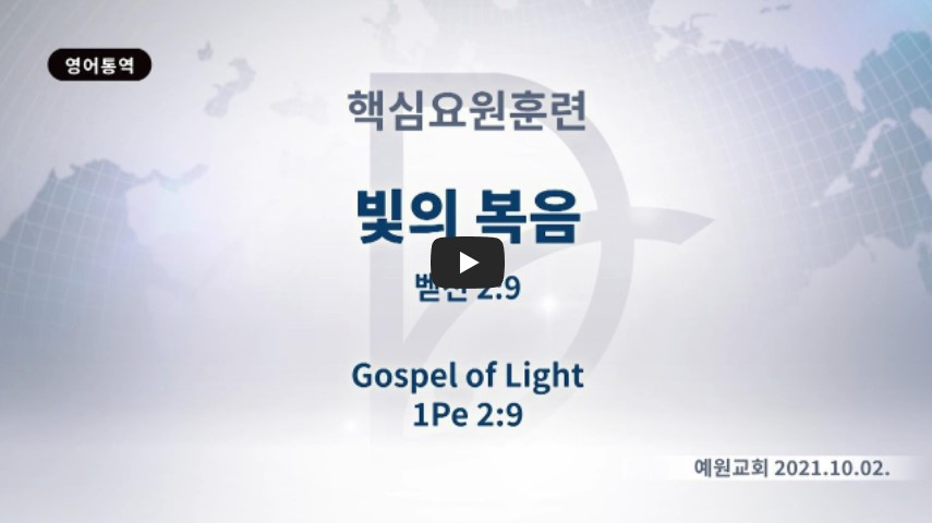 2022년 4월 12일(화) 분류 핵심훈련 제목 제1,2,3 RUTC응답의 현장(37)- 빛의 복음 성경 베드로전서 2:9 일시/장소 2021년 10월 2일, 예원교회 설교 류광수 목사 (녹취정리: 차동호 목사) 출처 (사) 세계복