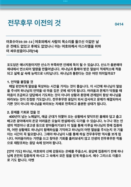 전무후무 이전의 것(여호수아 10:10~14)-기도수첩
