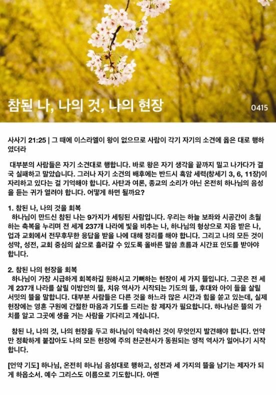 참된 나, 나의 것, 나의 현장(사사기 21:25)-기도수첩