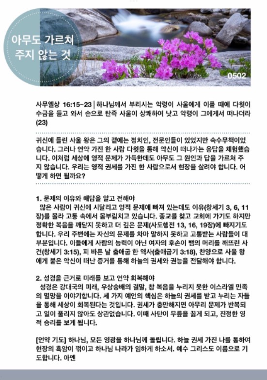 아무도 가르쳐 주지 않는 것(사무엘상 16:15~23)-기도수첩