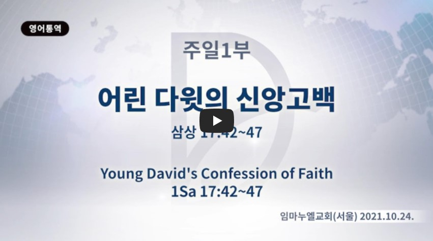 2022년 5월 6일(금) 분류 주일예배 설교- 주일1부 제목 어린 다윗의 신앙고백 성경 사무엘상17:42-47 일시/장소 2021년 10월 24일, 임마누엘교회(서울) 설교 류광수 목사 (녹취정리: 차동호 목사) 출처 (